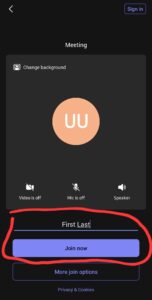 - Fill out your First and Last name, make sure your camera is on and click join.